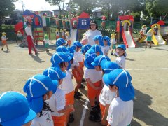 朝の朝礼では、園長先生に大きな声でご挨拶できました。