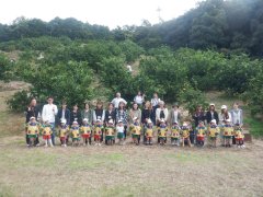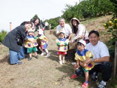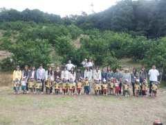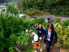 喜多農園に到着して、写真を撮り、喜多農園の方からみかんの採り方のお話をお伺いして、いざ、みかん山へ!!