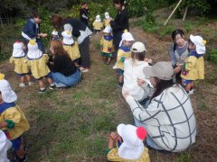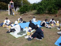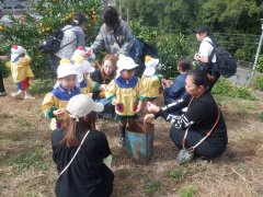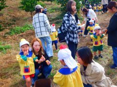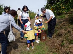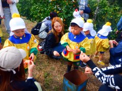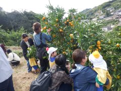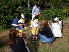 今日は良いお天気の下でみかん狩り遠足へ行きました。
