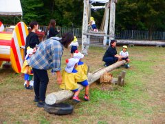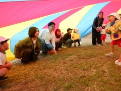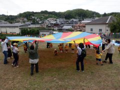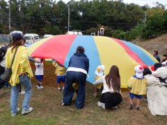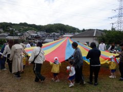 遊具で遊び、パラバルーンをして遊んで、フォークダンスをして楽しい一日でした。