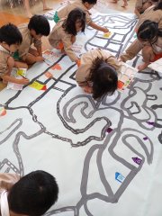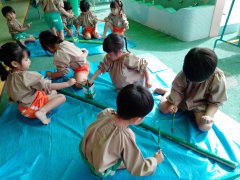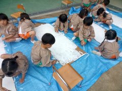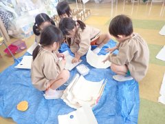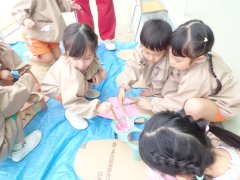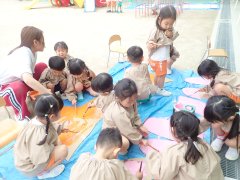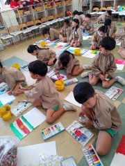 今日は過ごしやすいお天気、幼稚園では絵の具日和でした🎨
