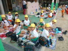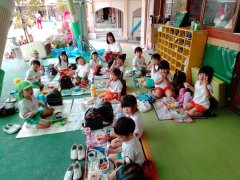 今日はお外やお部屋でシートを使ってお弁当を食べているクラスが多かったです。