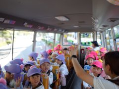 園バスに乗り込んで、みんなでお出かけするだけで嬉しくて仕方ない様子の年少さん!!