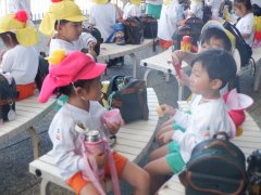 お楽しみのお弁当は、秋晴れの気持ちの良いお天気の中、青空の下で食べました。