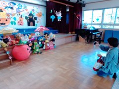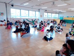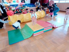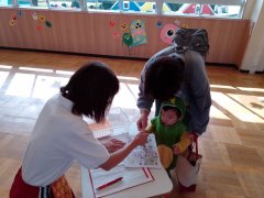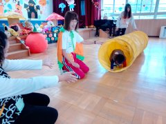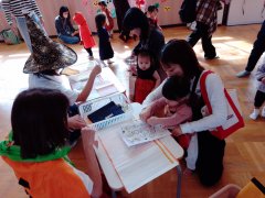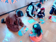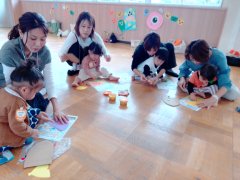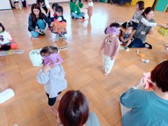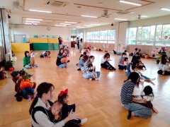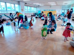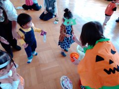 コウモリの仮面をみんなで作って変身した後は、「トリックオアトリート」と言っておやつをいただきました😊