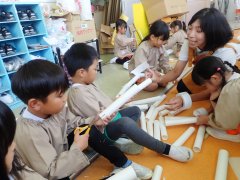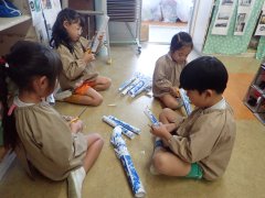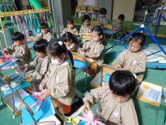 製作をしたり、お遊戯室でお昼ご飯を食べて力いっぱい!!