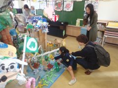 おうちの方もお子様と一緒に、各ご家庭で「これは面白い材料だな」「何かに使えるかな?」と集めて下さって、幼稚園で「これを使おう!」「〇〇に見えるな~」とお友達や先生と協力して作品を作り、皆さんと共に作り上げることが出来ました。