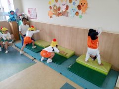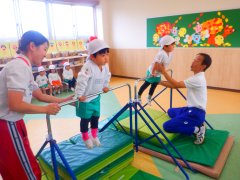 加藤先生の体育遊びでは、「上手だね!」「ここを見てごらん」「さっきより出来るようになったね!」とたくさんの言葉をかけてもらって、みんなの自信につながっていますよ💪