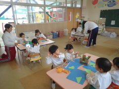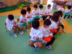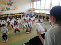 お部屋でも製作をしたり、ちょっと長いお話の中編童話を聞いたりして集中していましたよ。