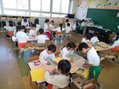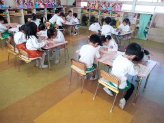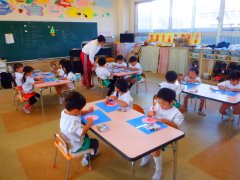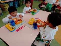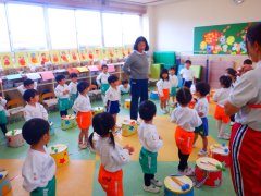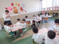 お部屋では楽器遊びや平仮名、ミュージカルごっこやワークなど、各クラス色んなことに取り組んでいました。