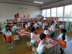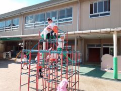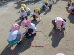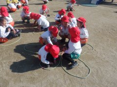 園長先生が、「忍者は同じ麻を毎日飛び越えて修行をしています。その麻はいつの間にか大きくなっていて、忍者は高い麻もいつの間にか跳べるようになっています。みんなも毎日少しずつ少しずつ成長していて、気づいたらこんなに大きくなっているのですよ。毎日の積み重ねは大切ですね!」とお話して下さいました。