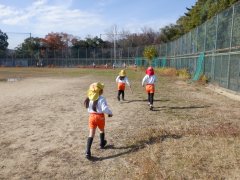 東グランドはマラソンやドッジボールに行ったりして、年長さんの遊び場所になっていて、みんな行くのに慣れています😊