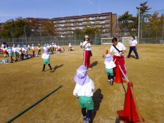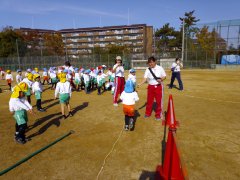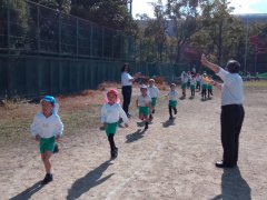 園長先生が2つ「きょうそう」があることをお話して下さいました。「お友達との競走はみんなで一緒に走って競い合うこと、もう一つは自分と競争することです。しんどいな、もう止めちゃおうかなと思った時に、あと少し頑張れるか自分と競争してみて下さい。」