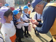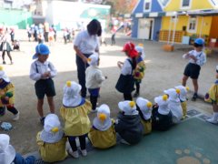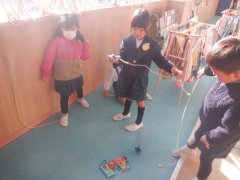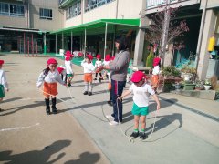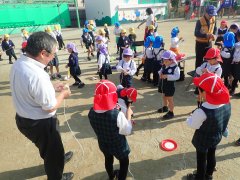年長さんはコマを準備して一緒に練習したり、教えていただいたり…園長先生も一緒に挑戦していましたよ。