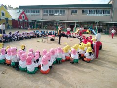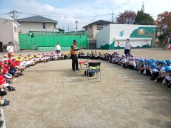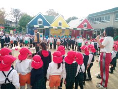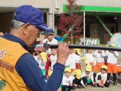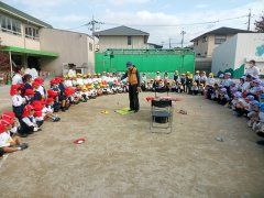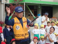 午後からはコマ名人さんが幼稚園に来て下さって年長・年中さんにたくさんの技を見せて下さいました。