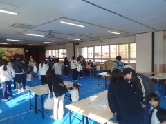 お遊戯室では令和8年度の新入園児さん・進級年少さんが用品購入に来てくださいました。