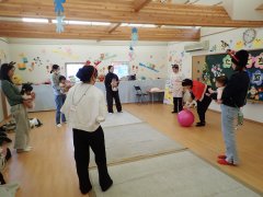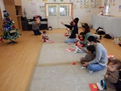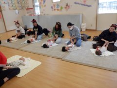 朝のお歌を歌って、出席をとったら酢谷先生のベビーマッサージです!
