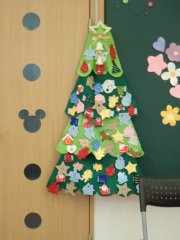 みんなでクリスマスツリーに飾り付けをして、パーツを合体!たまごちゃんのお友達みんなでクリスマスツリーを作りましたよ🎄