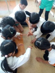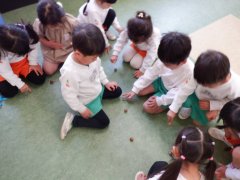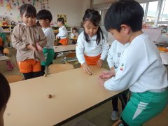 昨日、こま名人さんが来て下さって、みんなにどんぐりゴマをプレゼントして下さいました。