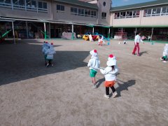 風が冷たい一日でしたが、ひがしっ子達はマラソンや戸外遊びでしっかり体を動かして温めて遊びましたよ😊