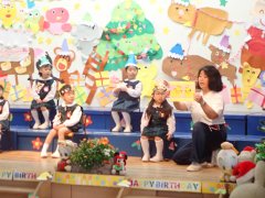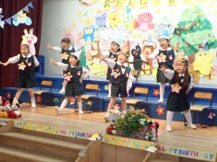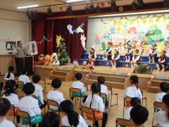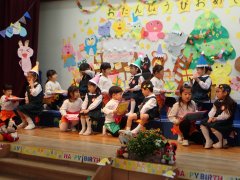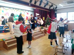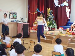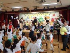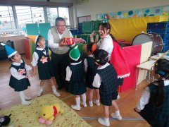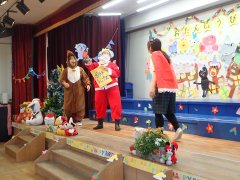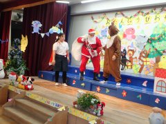 先生の出し物ではお誕生児さんも参加して、みんなでクリスマスプレゼントをいただきましたよ。