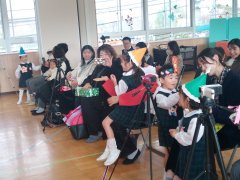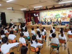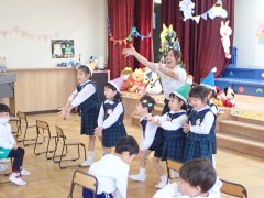 園長先生のお話では「良い子の所にはサンタクロースが来てくれるけれど、お友達に意地悪をしたり噓をついたり、悪いことをしているお友達の所にはブラックサンタがやってきて、腐った芋をプレゼントしてくれます…いらないよね。東金剛幼稚園の年中さんはみんな良い子だと信じていますよ。」とお話をして下さいました。