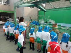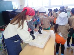 お餅が出来るまでを事前に絵本で先生に見せてもらっていたので、実際に見て触って感じて、子ども達の中で絵本で見ていたことがしっかりと繋がったと思います。とってもいい体験が出来ましたね!