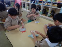 お部屋ではみんながつき上げたお餅を学級委員さんが遊べるように分けて下さいました。