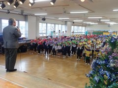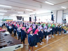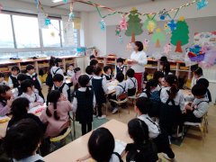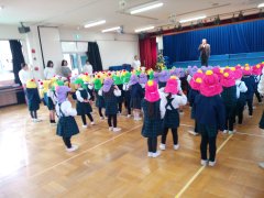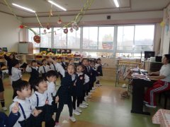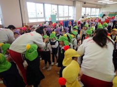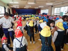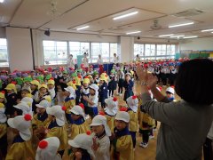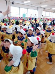 園長先生が大切なことを2つお話して下さいました。「2学期よく頑張りましたね!明日から冬休みになります。おじいちゃんおばあちゃんのお家に行ったり、お出かけしたりするお友達もいるかもしれません。おうちの人が行ってもいいですよと言った場所には行ってもいいです。でも、みんなはとっても可愛いから連れて帰ろうとする悪い人も中にはいます。おうちの人のお話をよく聞いて、知らない人にはついて行かない、行ってもいいよと言われていない場所には行かないようにしましょう。」「風邪コンコンバイキンには冬休みなんてお休みはありません。いつでもみんなのお腹の中を狙っていますよ。風邪コンコンに負けないようにするにはどうすればいいかな?」という問いには「うがい手洗い!!」としっかり答えてくれました。そんな賢くて、きちんと行動できるいい子のひがしっ子には、ブラックサンタではなくサンタさんがやってきてくれますね🎅