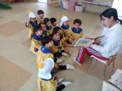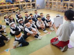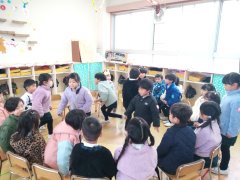 絵本を読んでもらったり、ゲーム遊びをしたり、ダンスに劇あそび、年長さんは2学期の九九の賞状を頂きました。