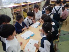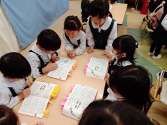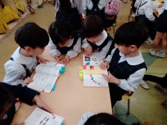 年長さんが辞書引きをしているので、さくらさんに辞書の使い方を見せてくれました📚