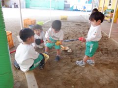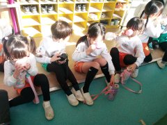 明日は年中、年長さんがダンスの衣装を着て練習しますよ。