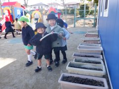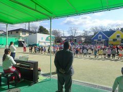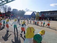 青空の下、みんなの歌声が気持ちよく響いていたので、園長先生も見に来て下さって、