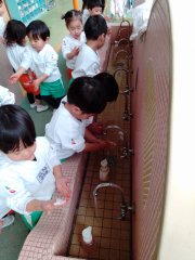 水が冷たくても、しっかり手洗いうがいゴシゴシしましょうの園長先生の言葉をみんなきちんと守っていますよ。