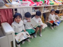 食後は絵本を一緒に見て、お外でも遊びました!