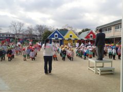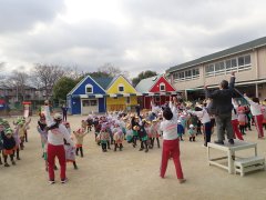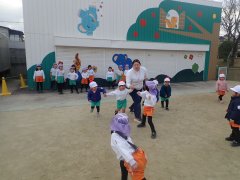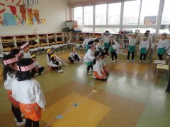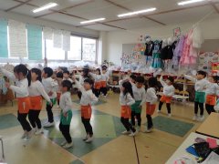 園長先生が「今まで一生懸命頑張ってきました。間違ってしまうかもしれません。セリフが飛んでしまうかもしれません。それでもみんなが力を出し切ったら良いです。楽しくしているところ、一生懸命している姿をおうちの方に見ていただきましょう。」とお話して下さいました。
