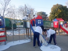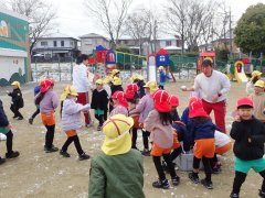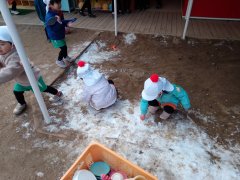昨日の雪が園庭にまだ残る中、登園してきたお友達は雪を触って遊んでいましたよ⛄