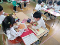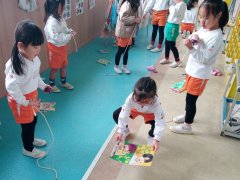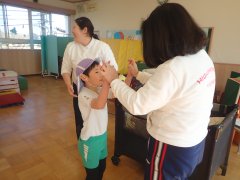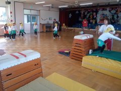 遊戯室では年長さんが跳び箱に励んでいます。