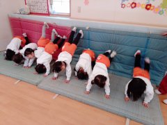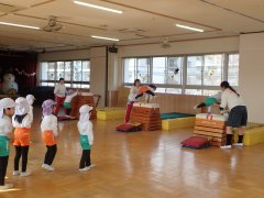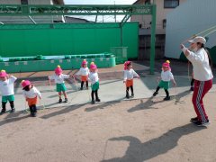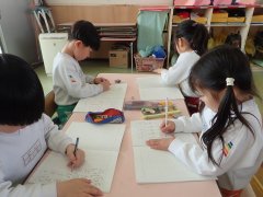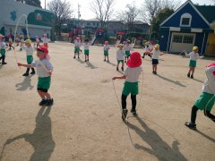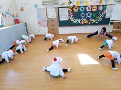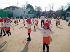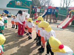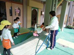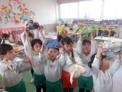 園長先生が「日本の檜は寒い冬暑い夏も辛抱強く耐えているから、粘りがあり強いのですよ!みんなも檜のように芯のある人になりましょうね。」と