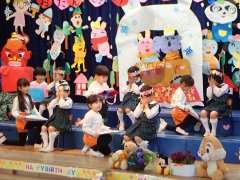先生の出し物は、「ごちゃまぜミュージカル」。発表会で歌った歌をみんなで歌って