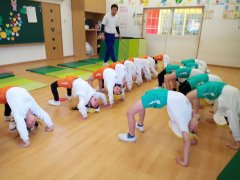はじめに、みんなで黒川先生と『だるまさんが躍った』を踊って、準備体操をしました。