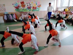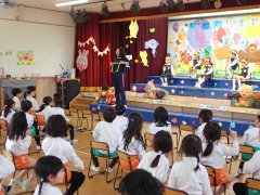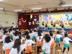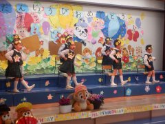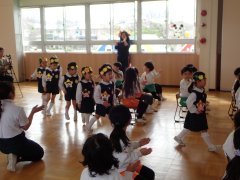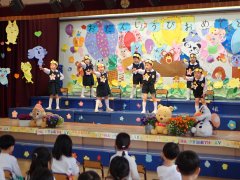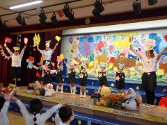 先生の出し物は、1年間を振り返る内容で、最後には運動会のダンスを踊りました。楽しかったね。