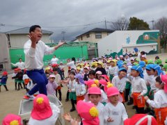 副園長先生の手品は輪っかを切ると2つになったり、四角になったり…みんなビックリ😲