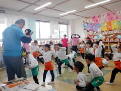 朝からみんなで「ラーメン体操」を楽しみました。