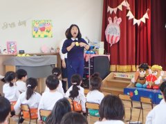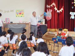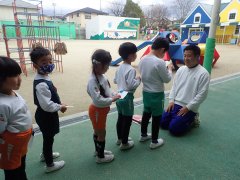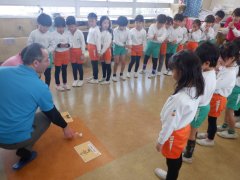今日は、年長さんの幼稚園で最後の英語遊びでした。