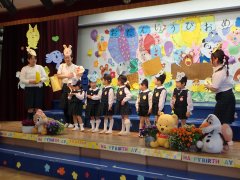 5歳の宣言を3月生まれさんがした後で、年中組さんのお友達全員でも一緒に5歳の宣言をしました。