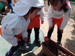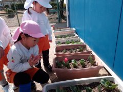 みんなで植えたチューリップの花が、少しずつ咲いてきましたよ✨