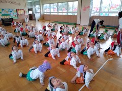 年少さんと年中さんは一緒に体操をしていました!