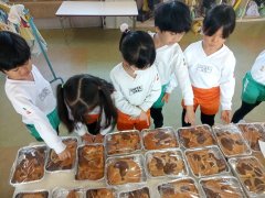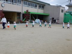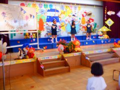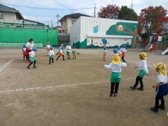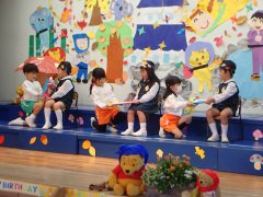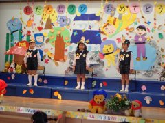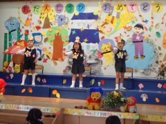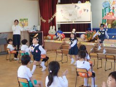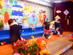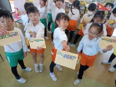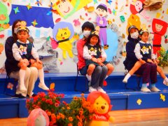 年少組11月生まれのお誕生会。 元気一杯入場しお歌も発表しましたよ。