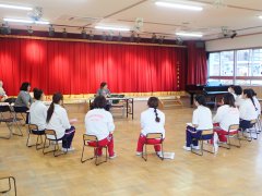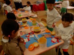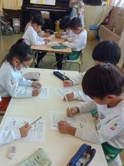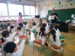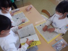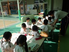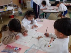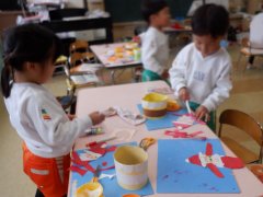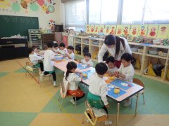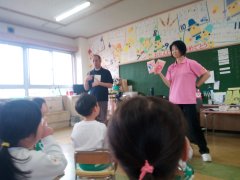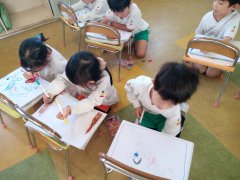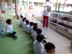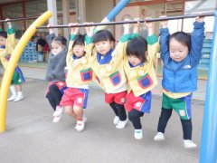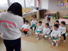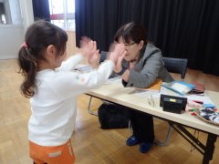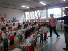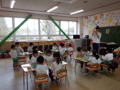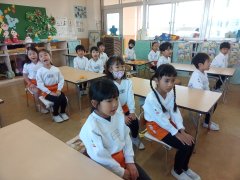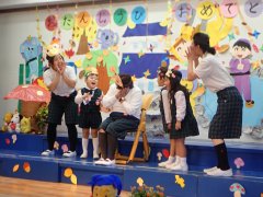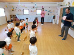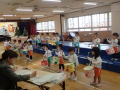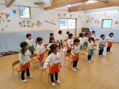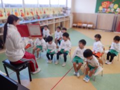 大好きな園長先生からのお話のプレゼントでは、風邪バイキンが皆の身体を狙っているので手洗いうがいをしっかりしましょうとお話して下さいました。そしてかっこいい手の洗い方も教えて下さいましたよ。皆で、ゴシゴシと手の洗い方を真似っこしました。